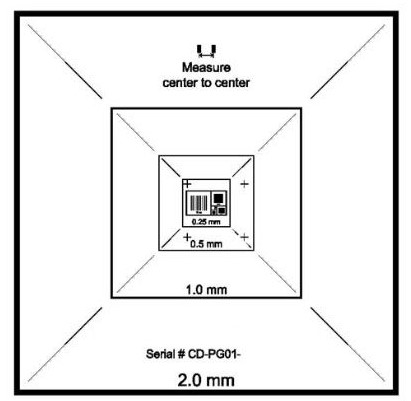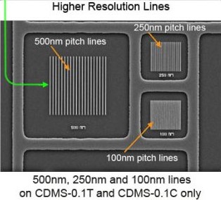 此CDMS标样运用目前先进的半导体和微电子系统制成。50nm的铬沉积于超平的硅衬底上形成100nm~5µm的一维栅格,50nm金沉积于20nm的铬之上形成2µm~100nm的栅格图样。硅衬底表面未镀膜。尺寸较小的栅格被环绕在尺寸较大的栅格里面以便于迅速定位,栅格的尺寸误差不超过0.3%。